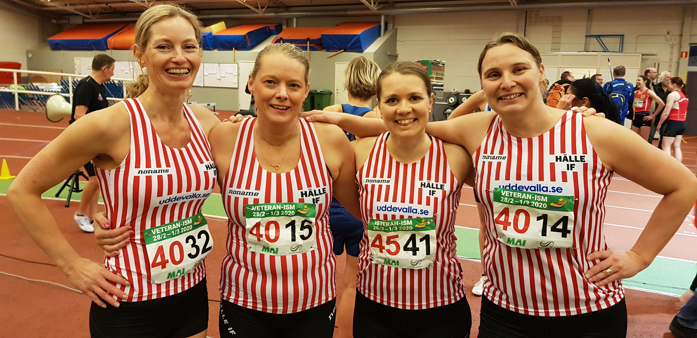 I helgen arrangerades inomhus veteran-SM i friidrott i Malmö och Hälle IF ställde upp med en stor trupp. Bl.a. så kunde klubben nu äntligen ställa upp med ett kvinnligt veteran stafettlag. Det var i klassen K40 på 4x200m som veterantjejerna gjorde debut och sprang hem guldet och satte då distriktets första rekord för klassen. I laget sprang Anna Logg, Weronica Hägg, Catrine Forsström och Maria Gylfe.