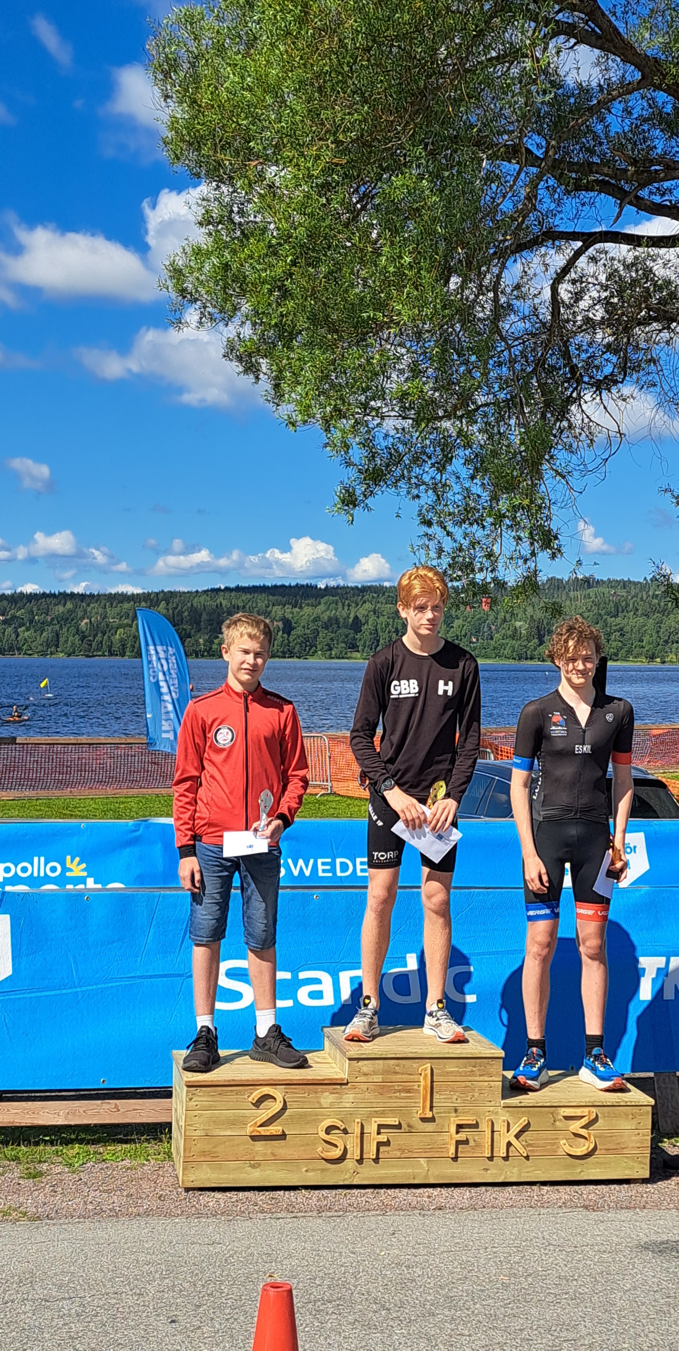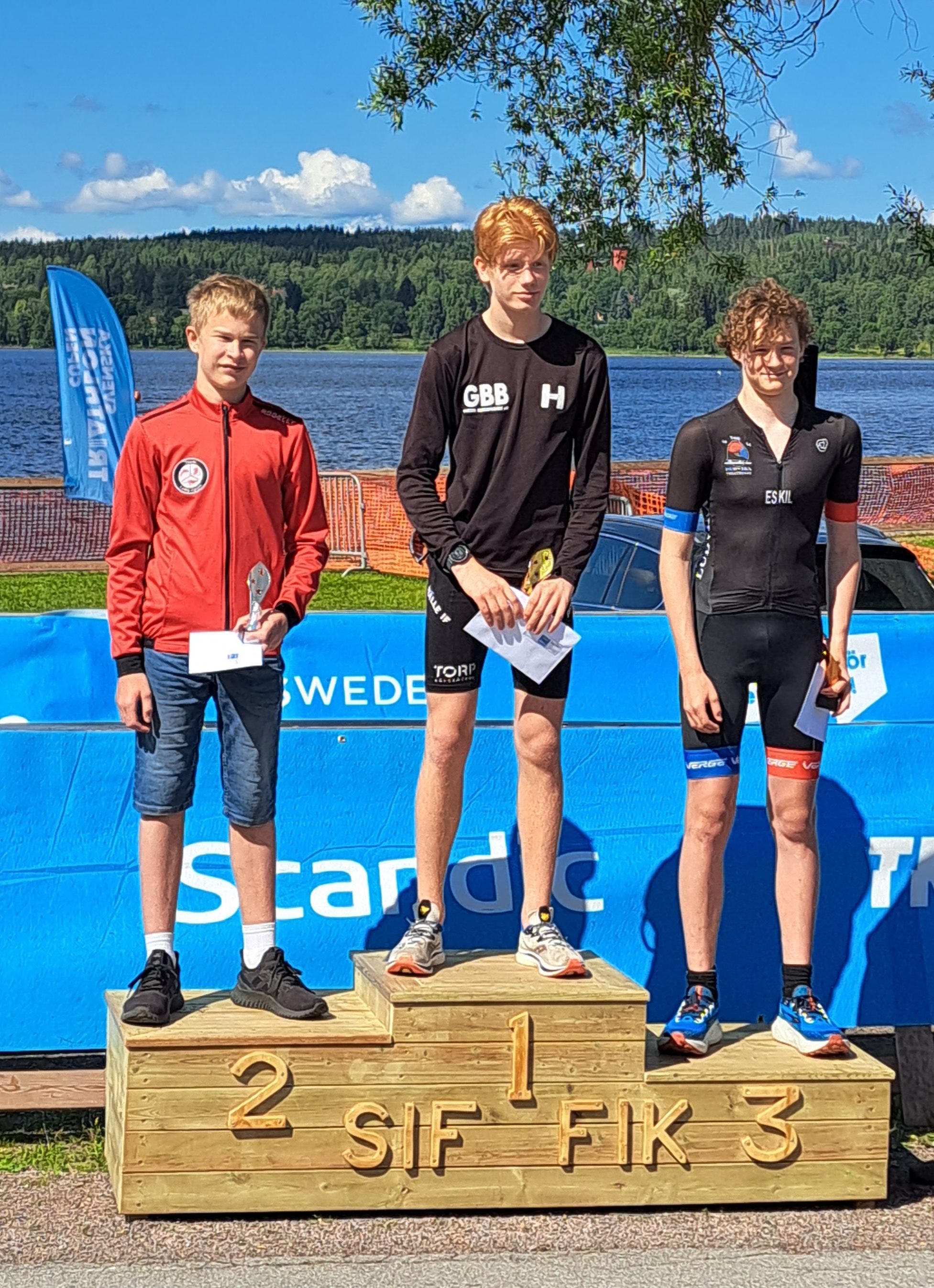 Linus Framme deltog i Säter Triathlon, en deltävling i Svenska Triathlon Cupen (STC), i denna Dalarnas triathlonmetropol. Efter en inledande 3:e plats i cupen (Hallstahammar) och 2:a plats (Umeå i samband med SM-veckan), så fick han nu kliva högst upp på prispallen i klassen P15! Distansen var s.k. Supersprint; 400m simning – 10 km cykling – 2,5 km löpning. Linus totaltid blev 35:48, vilket var en klar förbättring jämfört med tidigare lopp. I Säter startade alla herrklasser (Elit, Junior och Ungdom) gemensamt, vilket är kul för man får mäta sig med de absolut bästa i Sverige. Med en bakgrund som simmare låg Linus bra till sammanlagt efter simningen. Växlingsmomentet och cyklingen (som kan vara tekniskt krävande på sprintdistans) håller han fortfarande på att lära sig. I Säter tog Linus som vanligt in mycket på den avslutande löpningen, och passerade mer rutinerade triatleter. Då ska man komma ihåg att det är en helt annan grej att springa med ett cykellopp i benen! Linus ligger nu bra till för att ta hem klassegern i Svenska Triathlon Cupen, som avslutas i Vadstena senare i sommar.